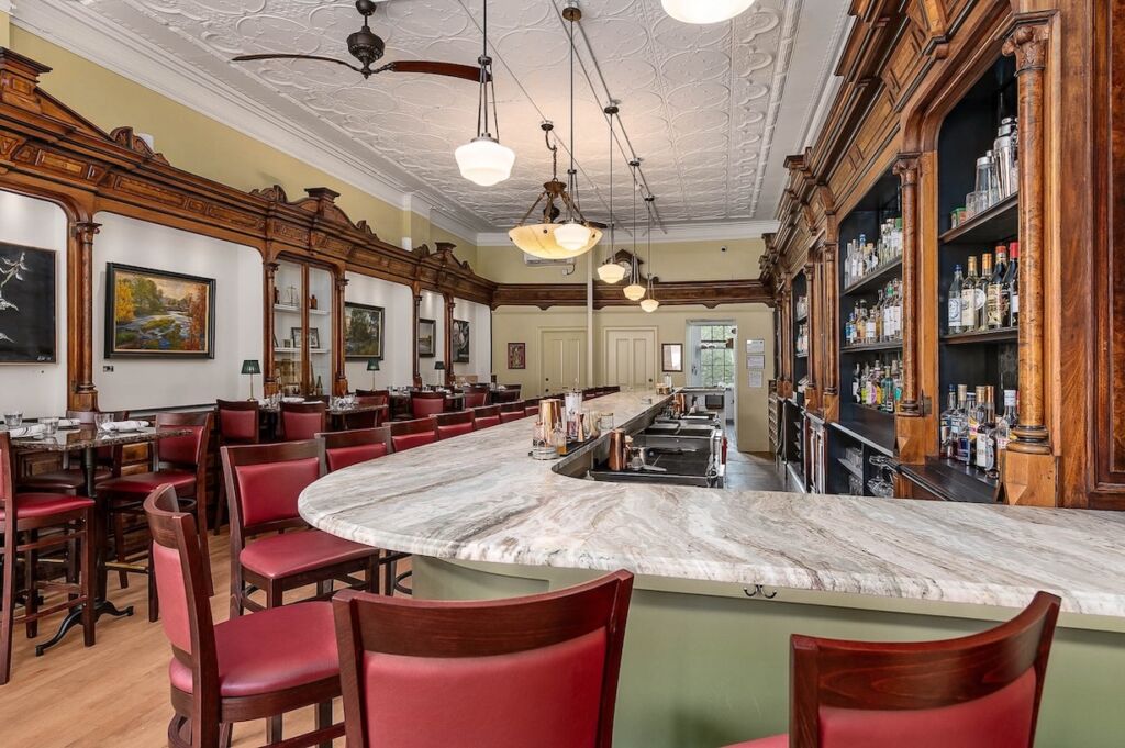 The Chinburg team was tasked to create a functional modern cocktail bar, while maintaining the rich history that the original apothecary provides. The 150+ year old historic building presented challenges that the team creatively overcame with custom-tailored solutions. These included rebuilding the wood flooring and preserving the original millwork, which features Latin engravings of once-common medicines and herbs, serving as The Exeter Apothecary‘s centerpiece.